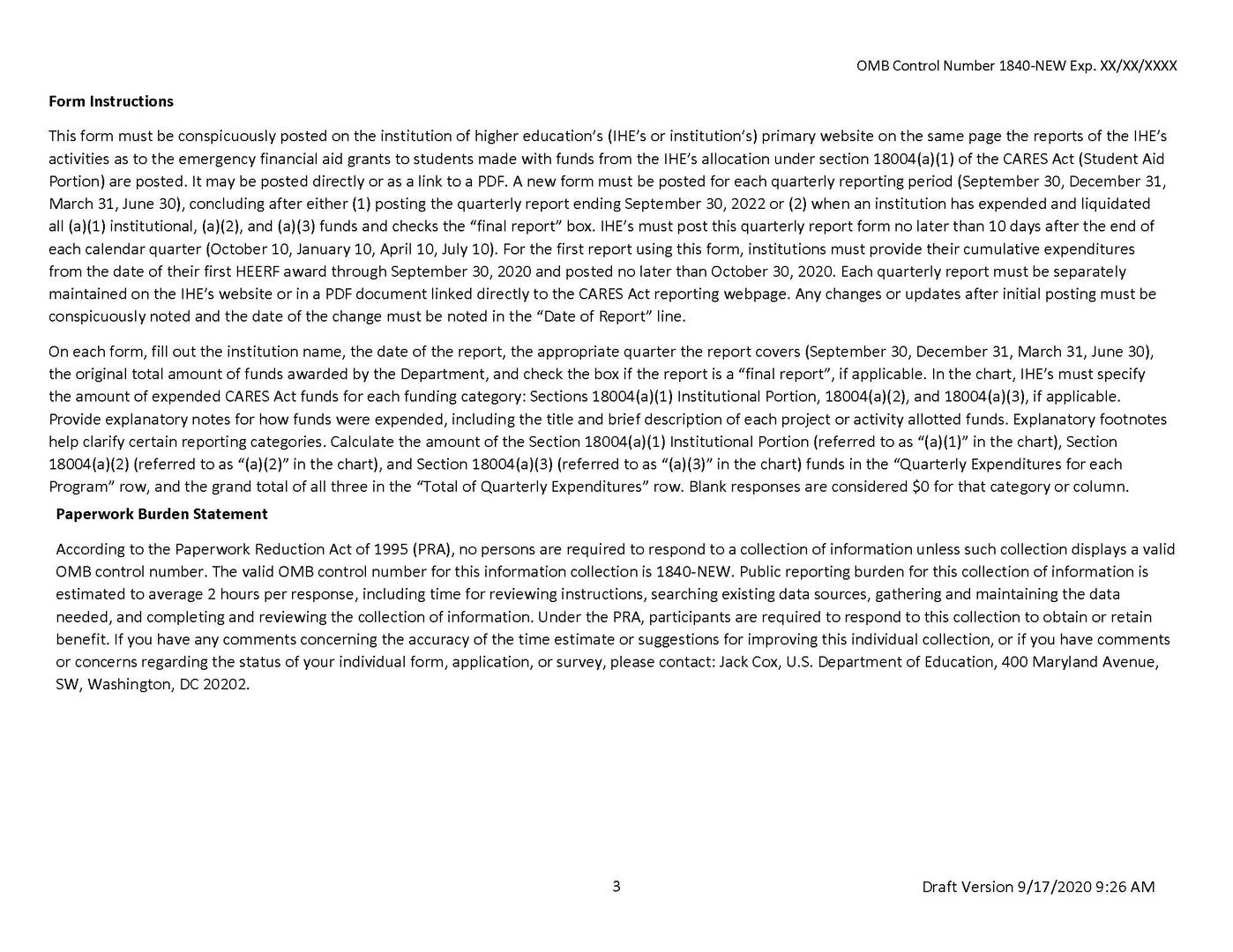 If you have questions about the information in this announcement, email the Higher Education Emergency Relief Fund.